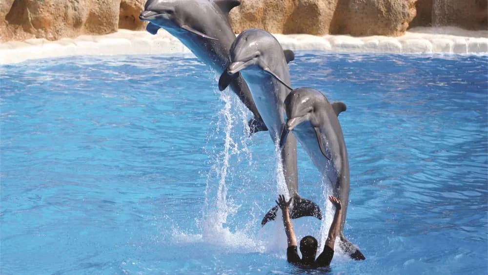 40-50 dakikalık canlı gösteri: top cambazlığı, halka atlama, dans, resim yapma, deniz aslanları ve beyaz balina performansları