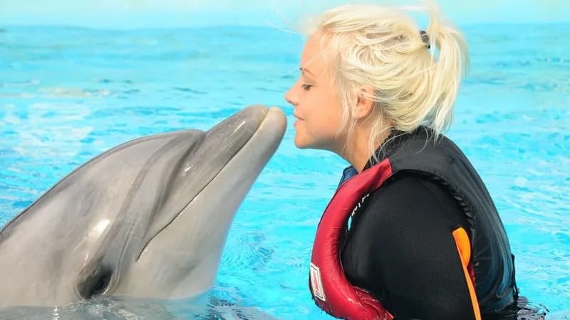 Gösteri sonrası yunuslarla yakın alan fotoğraf çekimi