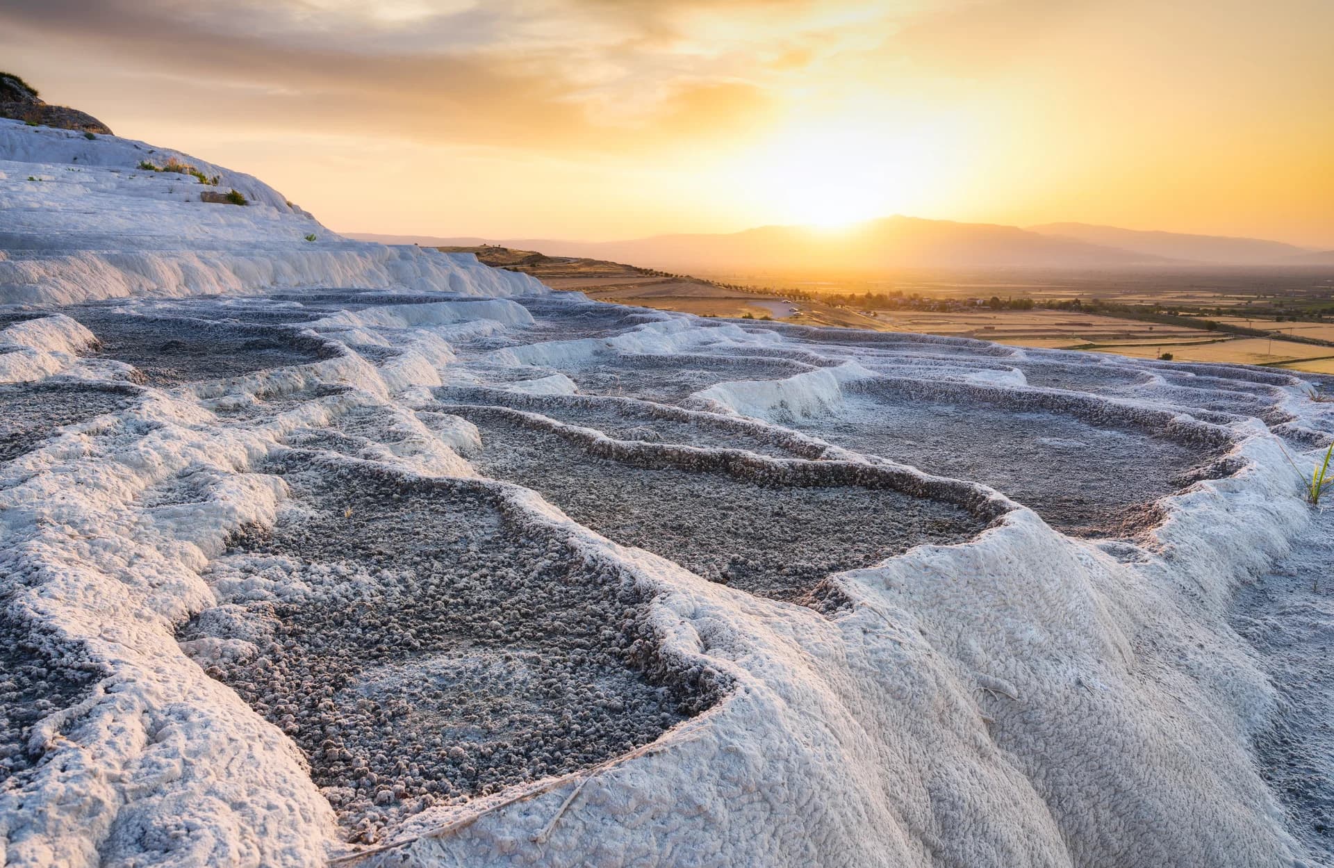 UNESCO Dünya Mirası travertenlerde yürüyüş. Doğal termal havuzlarda ayak banyosu.